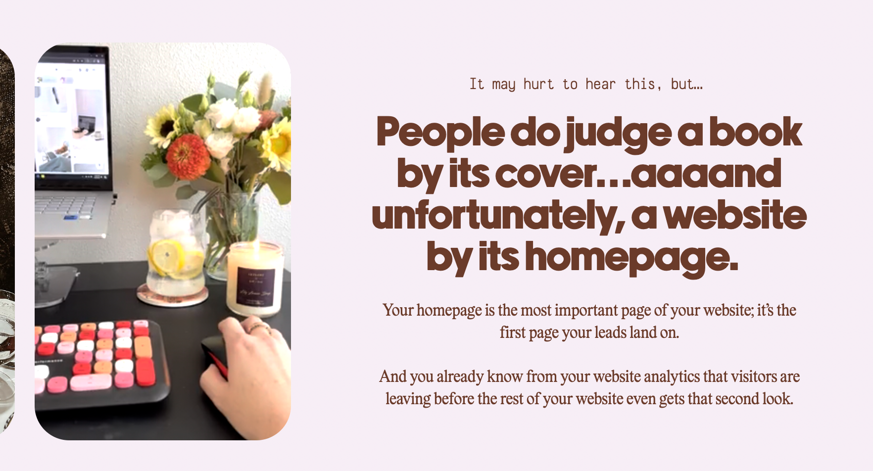 Her old sales page was the same. Totally fine. But her messaging was still educating business owners on why they need good design.