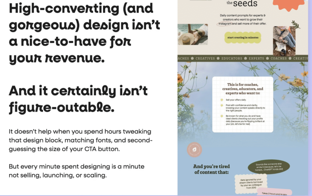 While Da has since switched up her offer (to focus on funnel design), she is truly one of the most talented designers in the game (I’m also in the middle of writing her website).