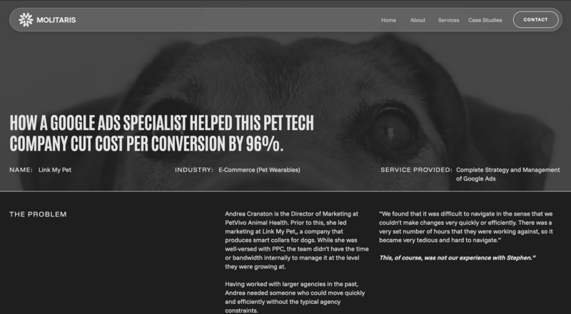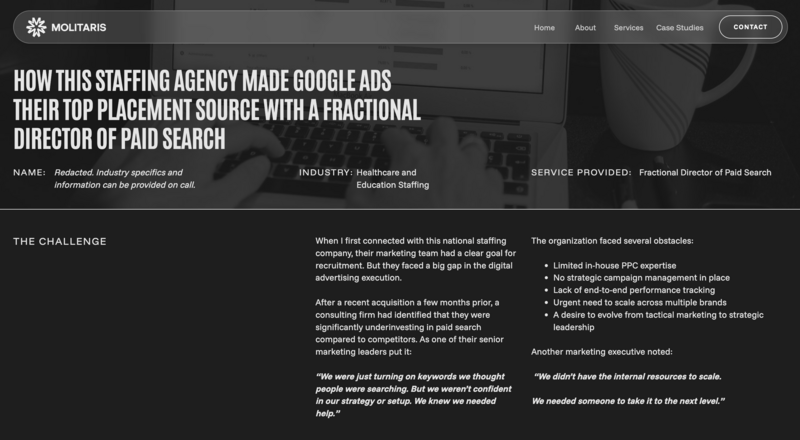 All because he had a case study that hit on a lot of things the lead was looking for — which means they saw the value in investing in his services.