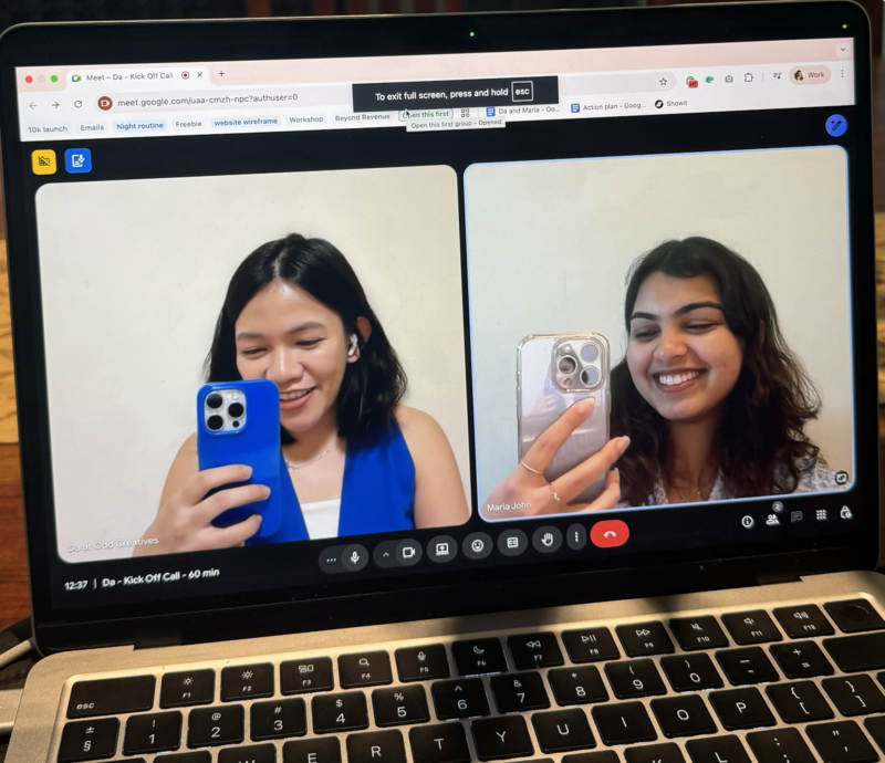 Get onboarded with The Odd Creatives while Maria and Da are in the dms, updating each other with copy and design ideas.